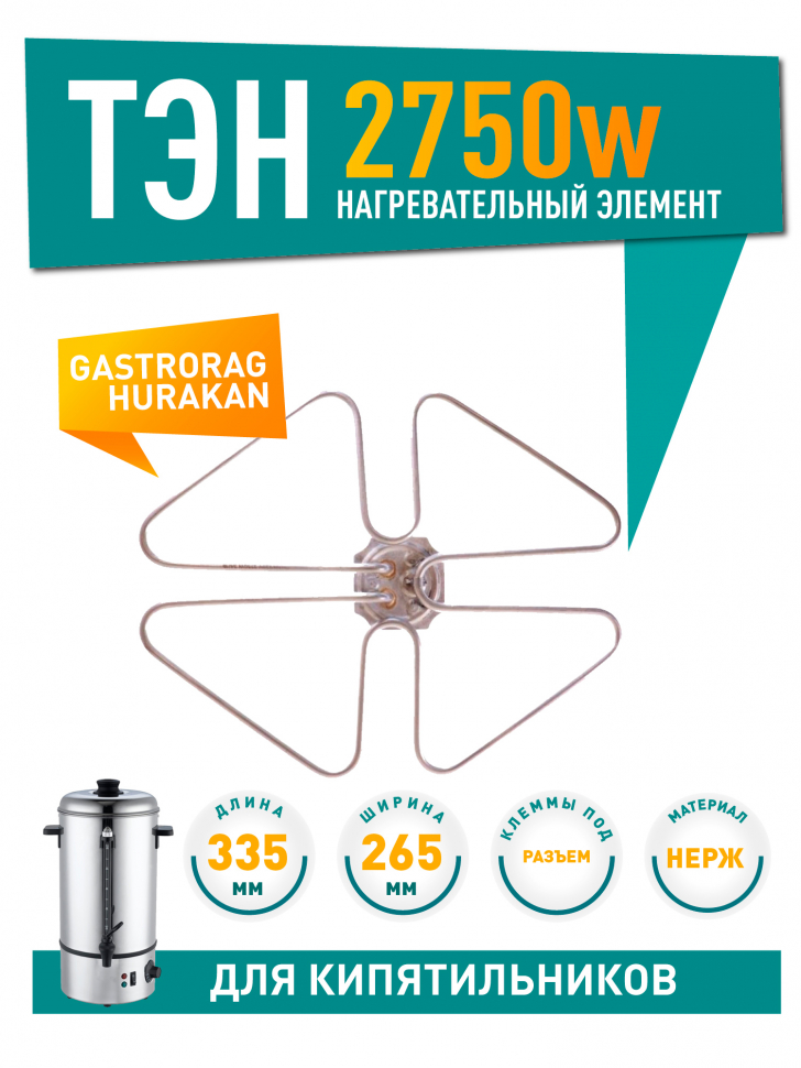 ТЭН для профессиональных кипятильников Gastrorag, Hurakan, 2.75кВт, 48275