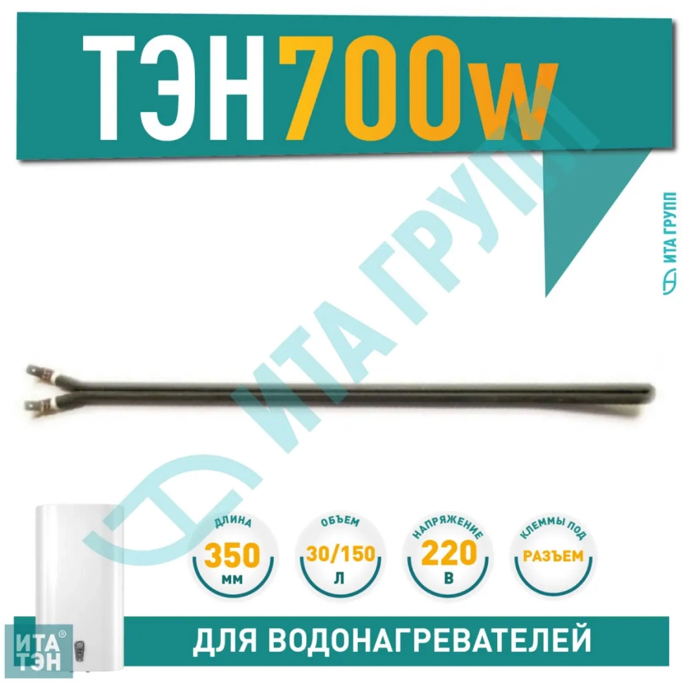 ТЭН изготовлен из нержавеющей стали, обеспечивает быстрый и равномерный нагрев воды благодаря мощности 0,7кВт. Установочная длина составляет 350мм. Рабочее напряжение 220В позволяет использовать его в бытовых условиях. Клеммы под разъем обеспечивают простое и надежное подключение.